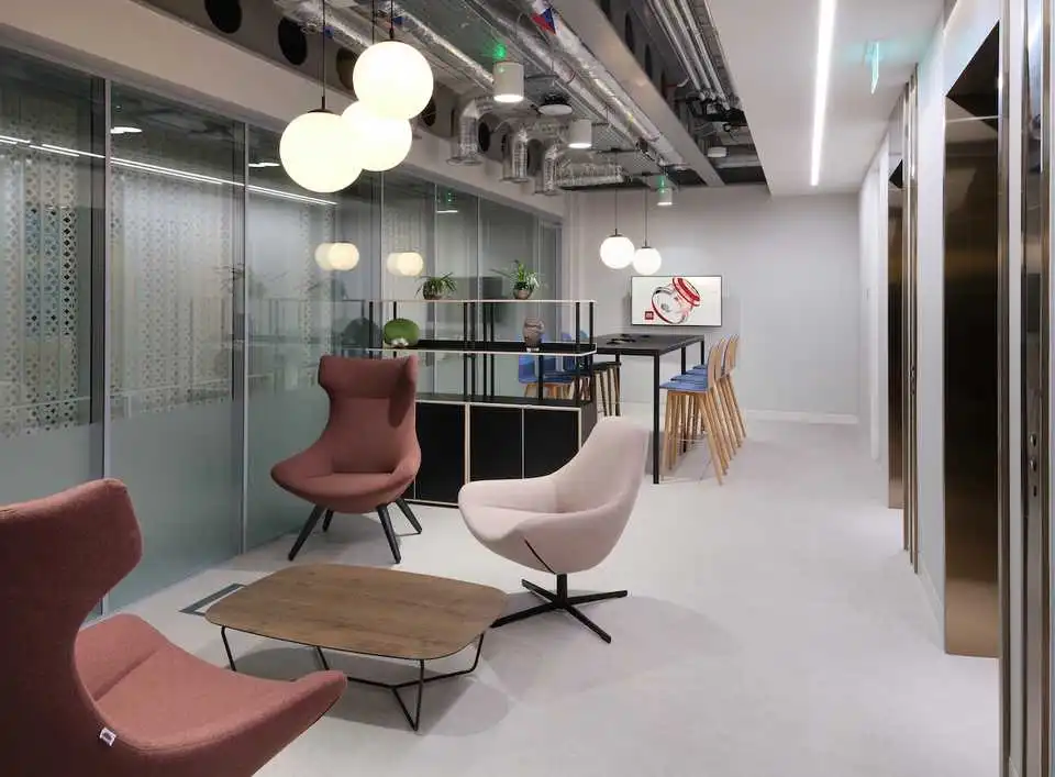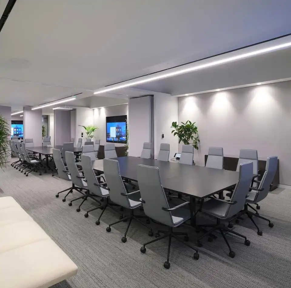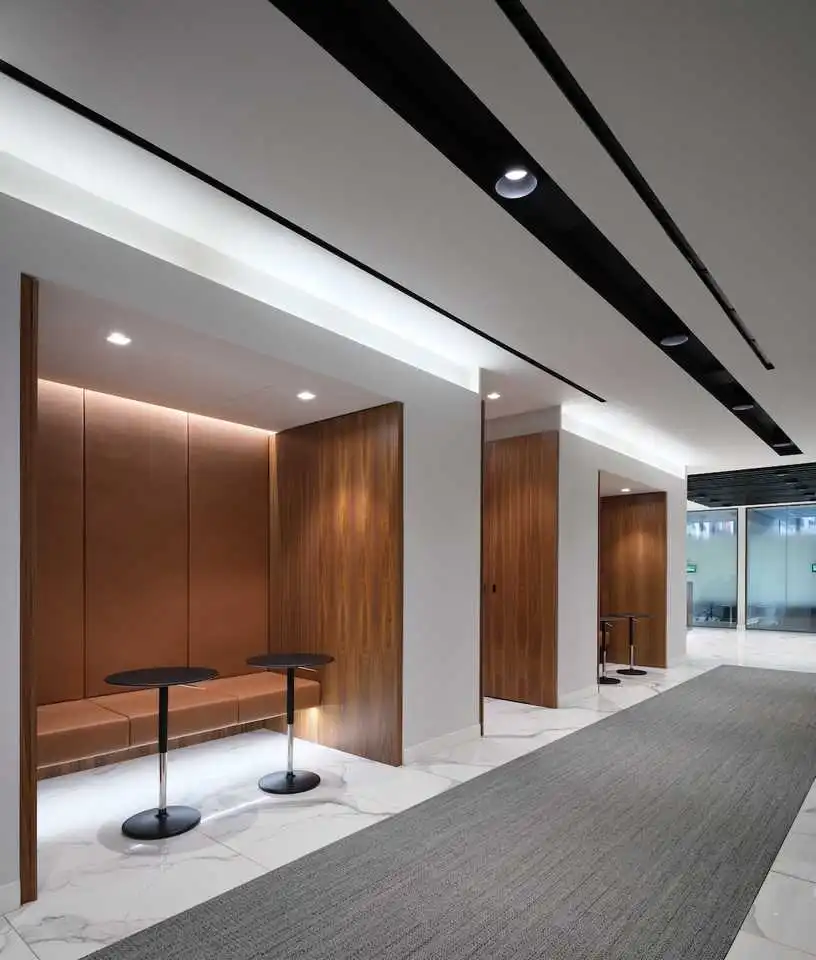 Modern contemporary interior design reflecting the client’s corporate identity.