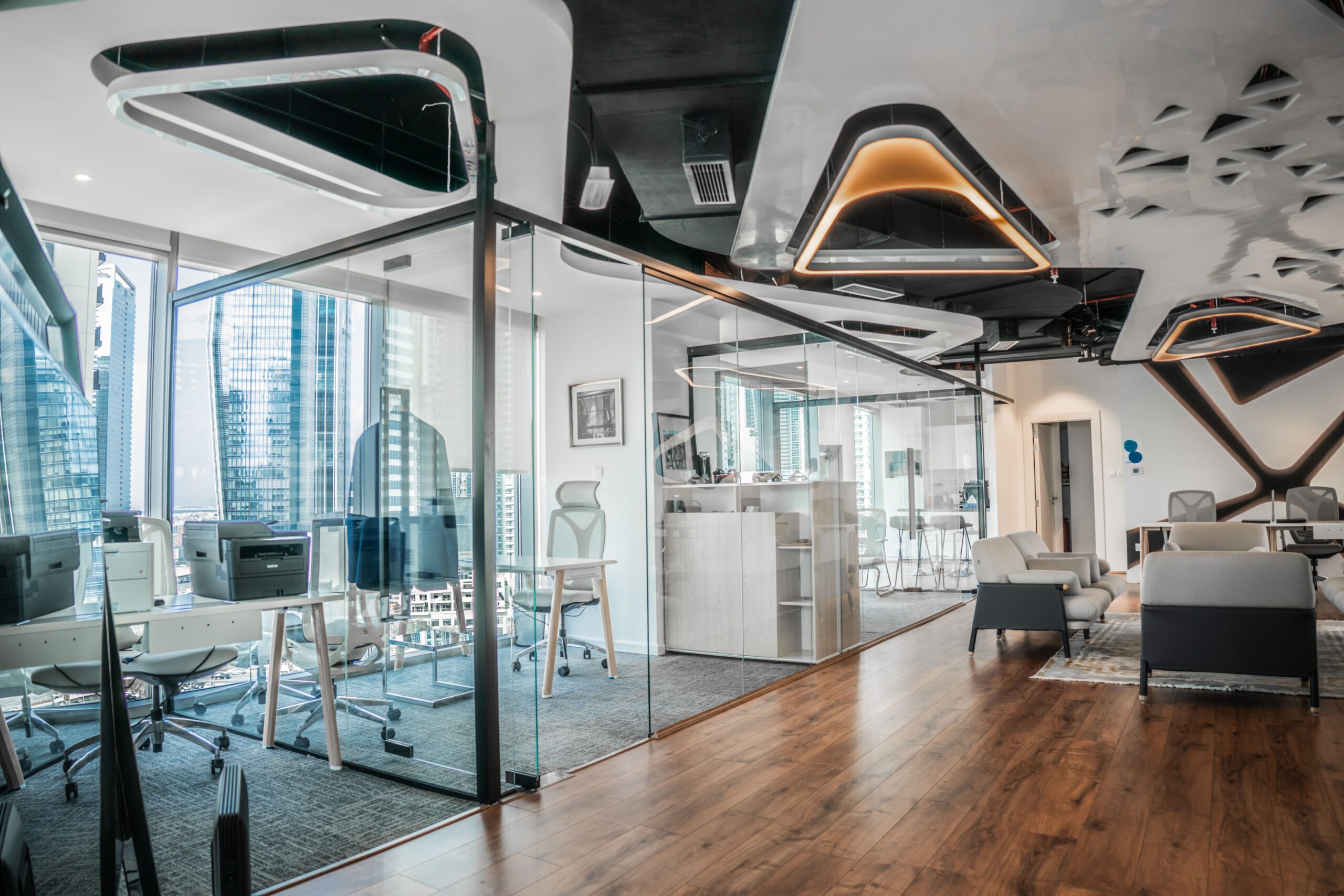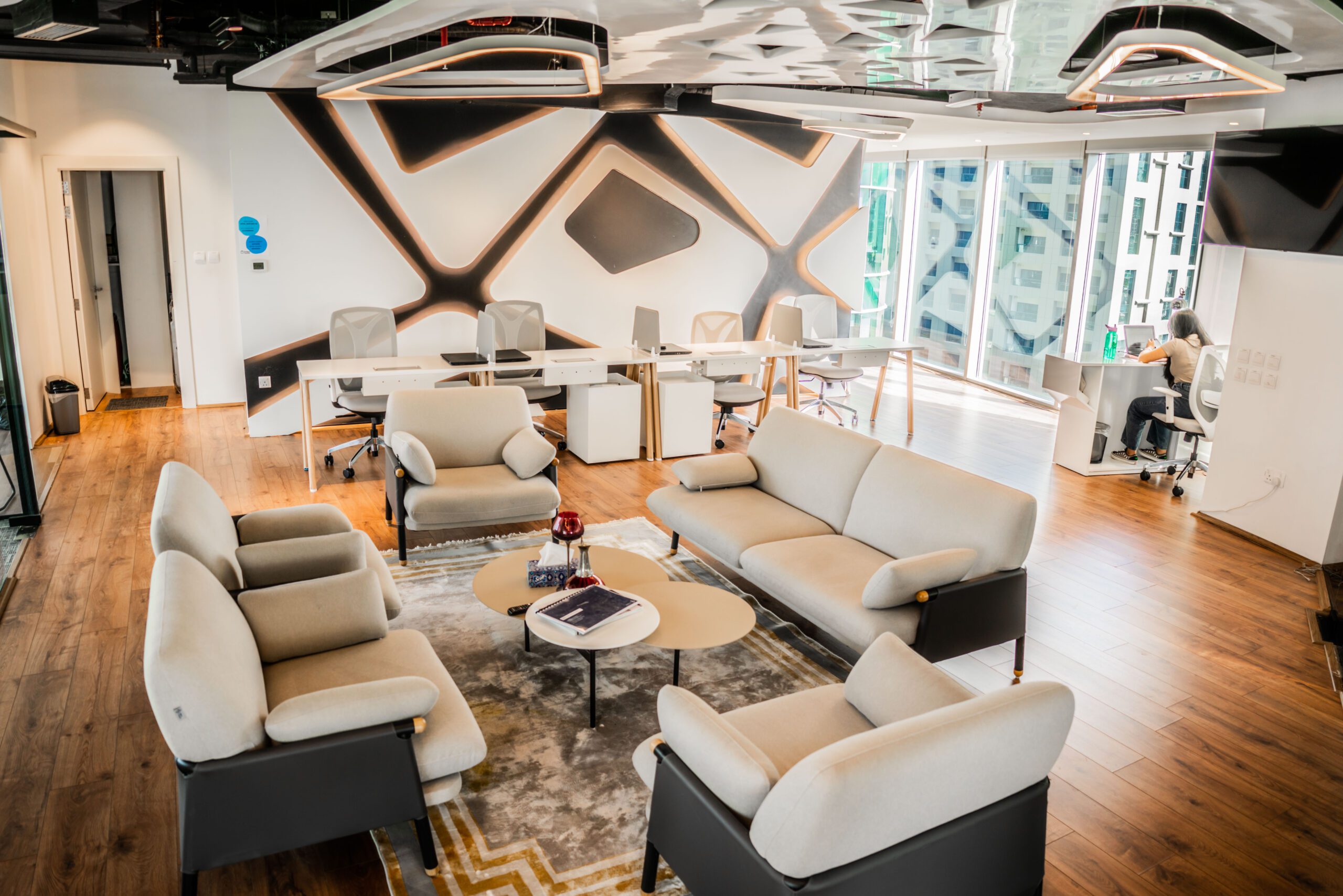 Inter Commercial is a seasoned Dubai property development group with over a decade of experience in both commercial and residential real estate development. When they approached us, their goal was clear: to create a flexible, high-spec ‘built-to-lease’ office space that aligned with the building’s profile and would appeal to tenants in the creative and tech industries. During early design meetings, the Whitemonde team led collaborative brainstorming sessions with Inter Commercial, showcasing visuals and concepts from our past projects tailored to creative and technology-driven workplaces. These discussions helped spark a shared vision for a modern, agile work environment.